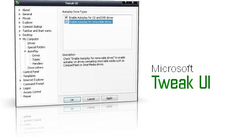 نرم افزار Tweak UI برنامه اي است كه به شما تنظيماتي كه در Windows XP ، default پنهان است ، دسترسي مي دهد تا بتوانيد آنها را به ميل خود تغيير دهيد اين برنامه شامل تنظيمات mouse ، Explorer ، taskbar ، desktop ، driver و تنظيمات كنترل پنل و My computer مي شود يكي از بارز ترين كاربرد اين نرم افزار در اين لينك آموزش داده شده اين برنامه توسط شركت ماكروسافت تهيه و طراحي شده است